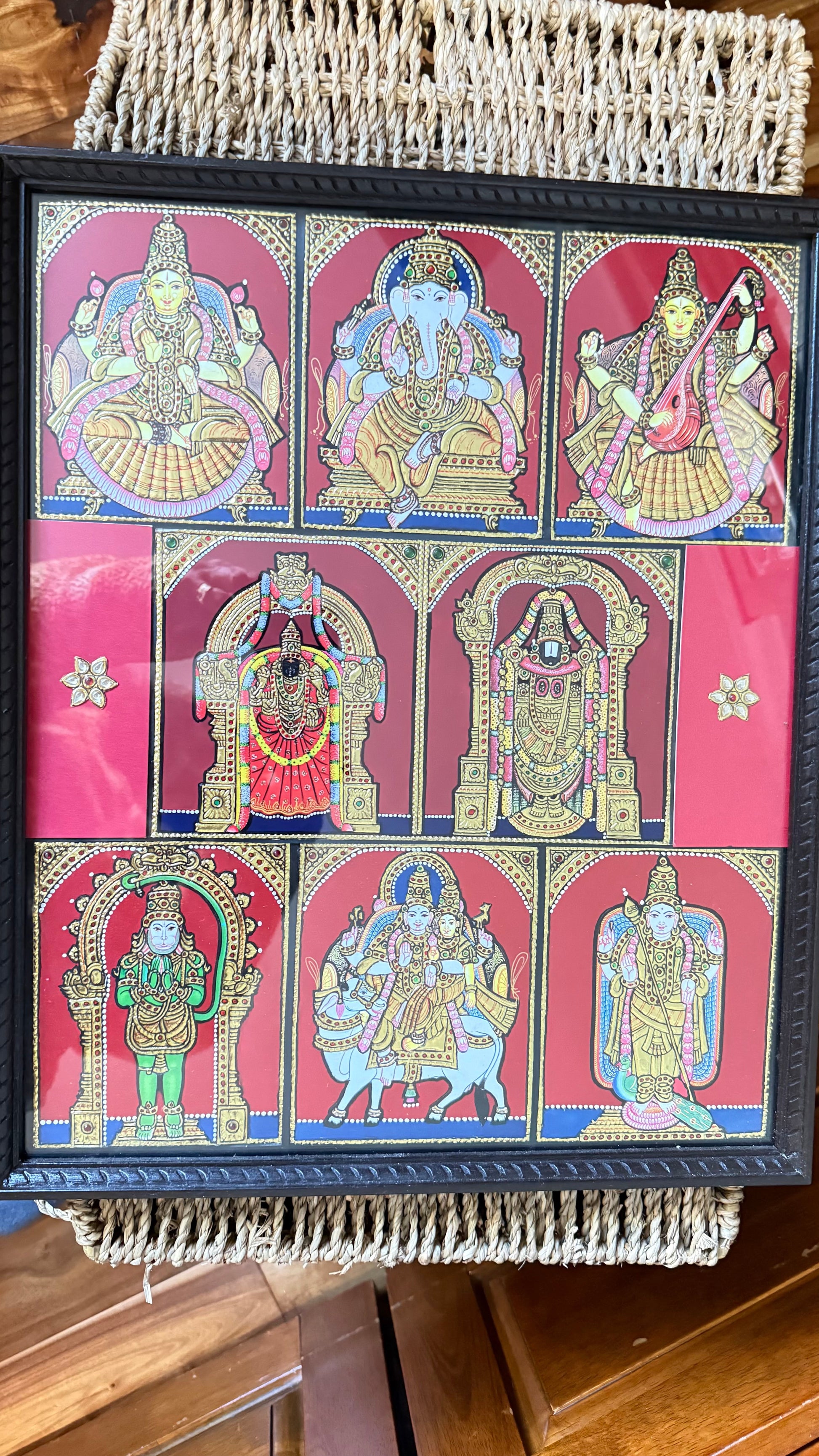 Each stunning 13x11 inch Tanjore painting is a masterpiece of traditional South Indian art, featuring the distinctive gold foil work that has made Thanjavur (Tanjore) paintings world-renowned for over 400 years. Handcrafted by skilled artisans and elegantly framed in teakwood, this original artwork brings the rich cultural heritage of Tamil Nadu into your home.