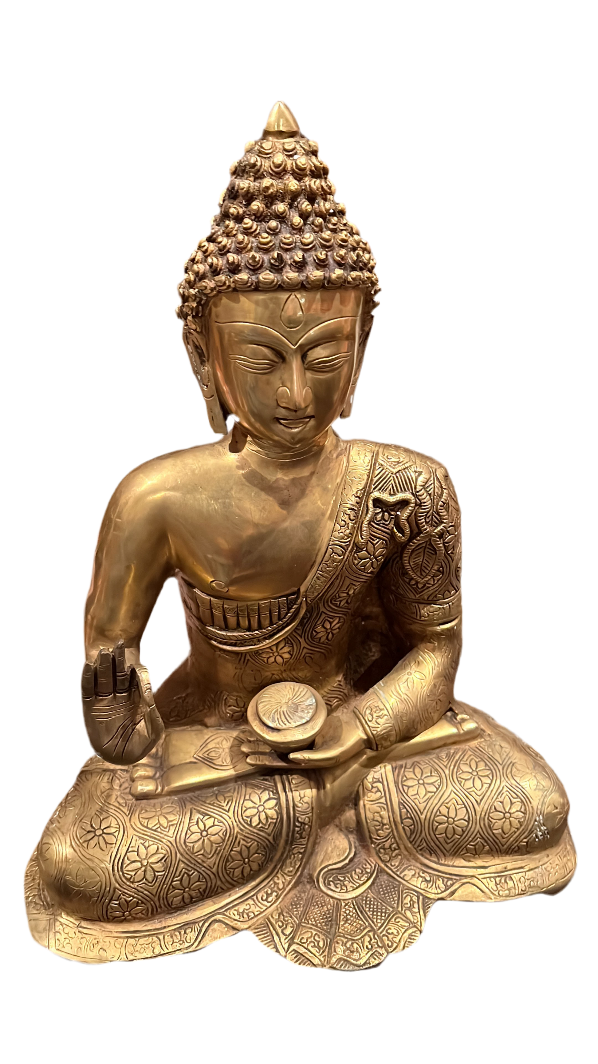 This impressive 24-inch bronze Buddha statue is a stunning centerpiece for meditation spaces, yoga studios, gardens, or home decor. Handcrafted using traditional lost-wax bronze casting techniques in India, this large-scale sculpture captures the serene essence of Buddha in meditation pose, radiating peace and spiritual presence.