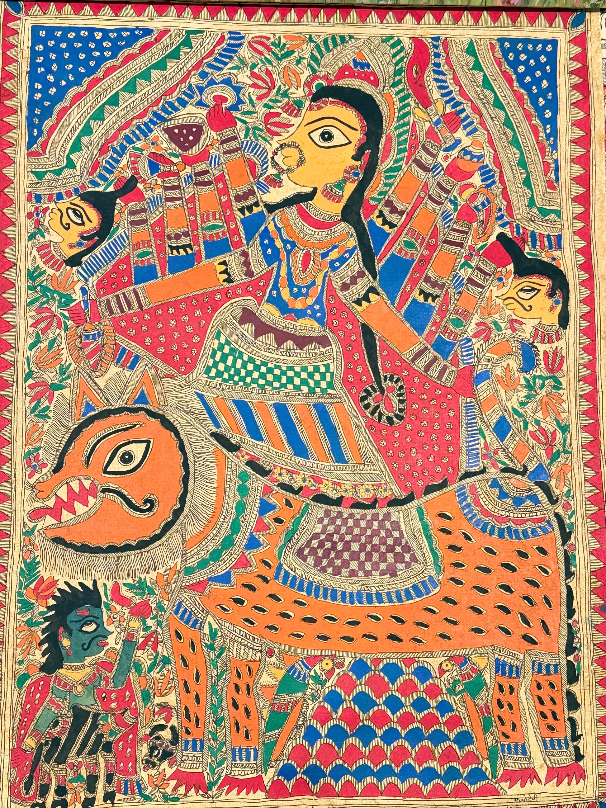 - Hand-painted using authentic techniques from Bihar's Mithila region