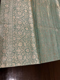 Add a touch of sophistication to your dining space with this exquisite Benarasi brocade table runner in a stunning silver-green color combination.